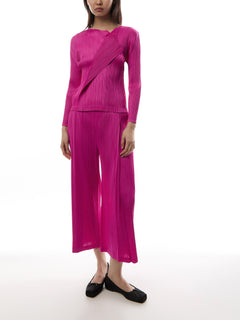 These cropped, wide-leg pleated trousers in pink feature tuck details on the front. They have an elasticated waistband and side pockets.LIGHT WAVE is characterized by its bold front panels that flutter as the wearer moves.
