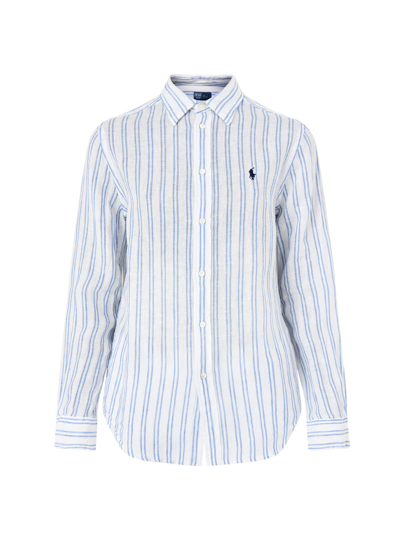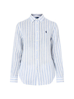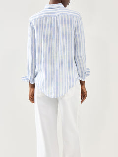 Classic Stripe Long Sleeve Button Front Shirt White Pond Blue