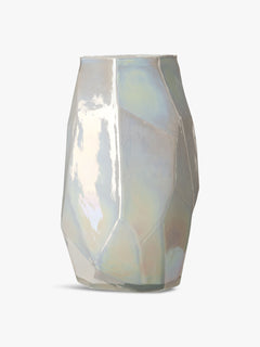 Large White Graphic Luster Vase