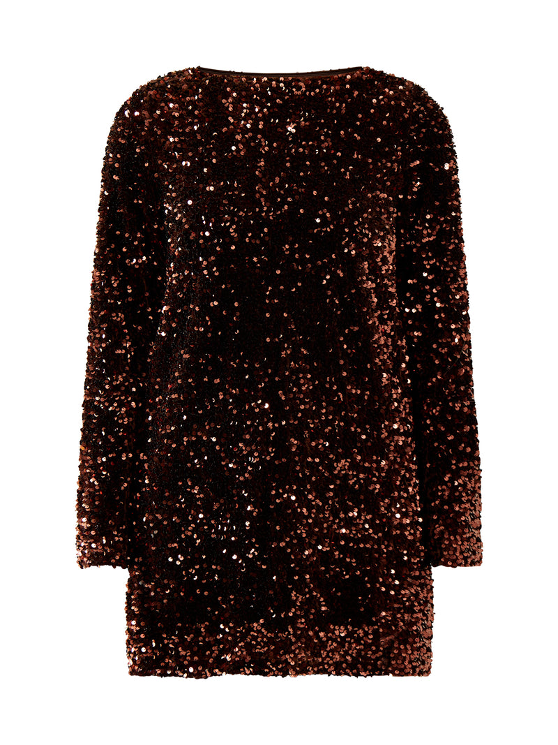 The Bow Sequin Mini Dress by Pretty Lavish is a contemporary take on party dressing. Cut to a flattering mini length in deep chocolate sequins, it’s detailed with a statement bow and long sleeves for balanced glamour. A bold yet refined piece for evening occasions.