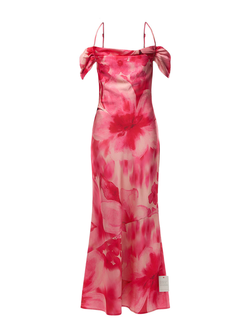 Premium satin. Asymmetrical cowl neckline. Adjustable straps. Zip and hook detail concealed at the side. Bias cut & Body skimming.