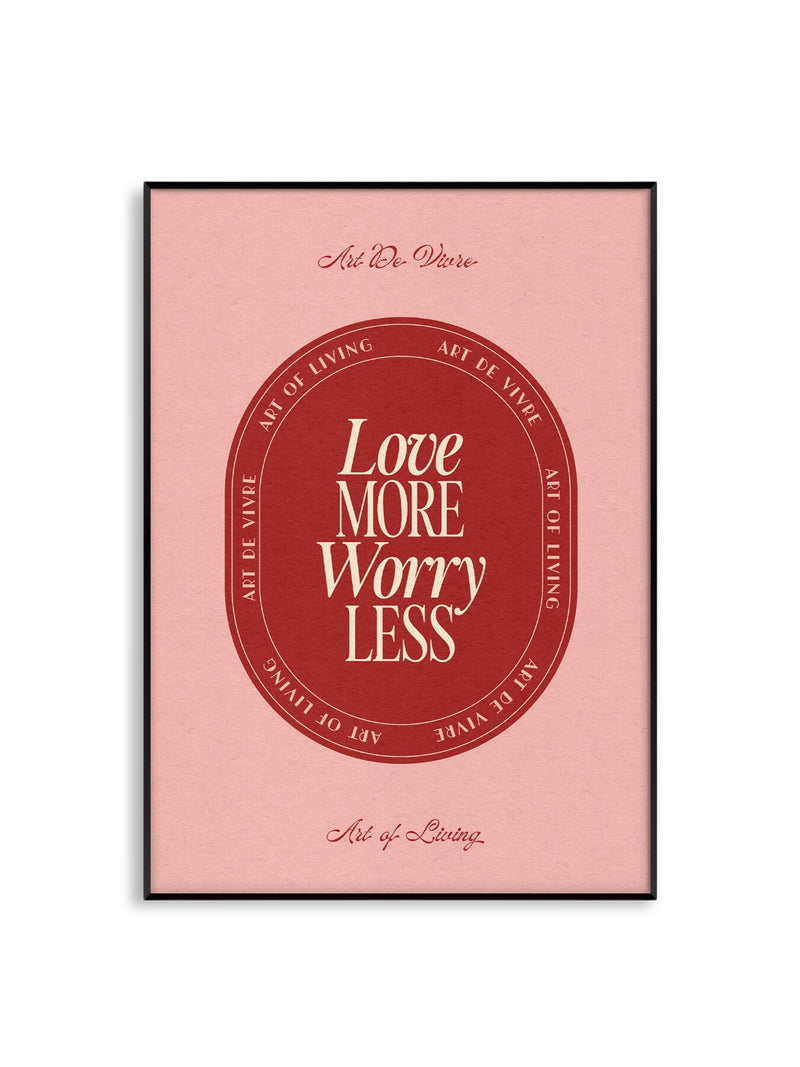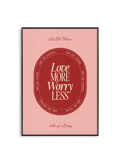 Love More Worry Less Pink Red A3 Print