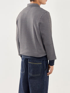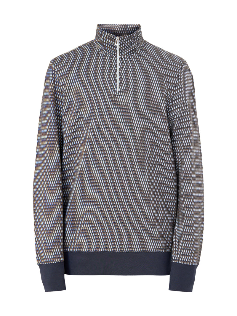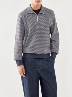 1/4 Zip Pattern Cotton Sweatshirt Blue