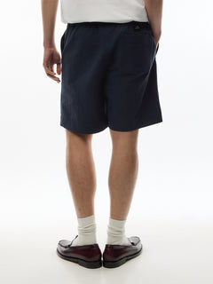 Made from a lightweight cotton with stretch, these navy shorts feature a textured seersucker finish. Ideal for the warmer months, these shorts are finished with an elasticated waist for added comfort.