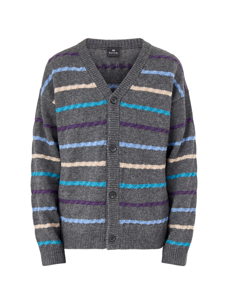 This Stripe Wool Cardigan in black combines classic style with warmth and comfort. Crafted from soft wool, it features a button-through front for easy wear and a stylish layered look.