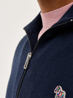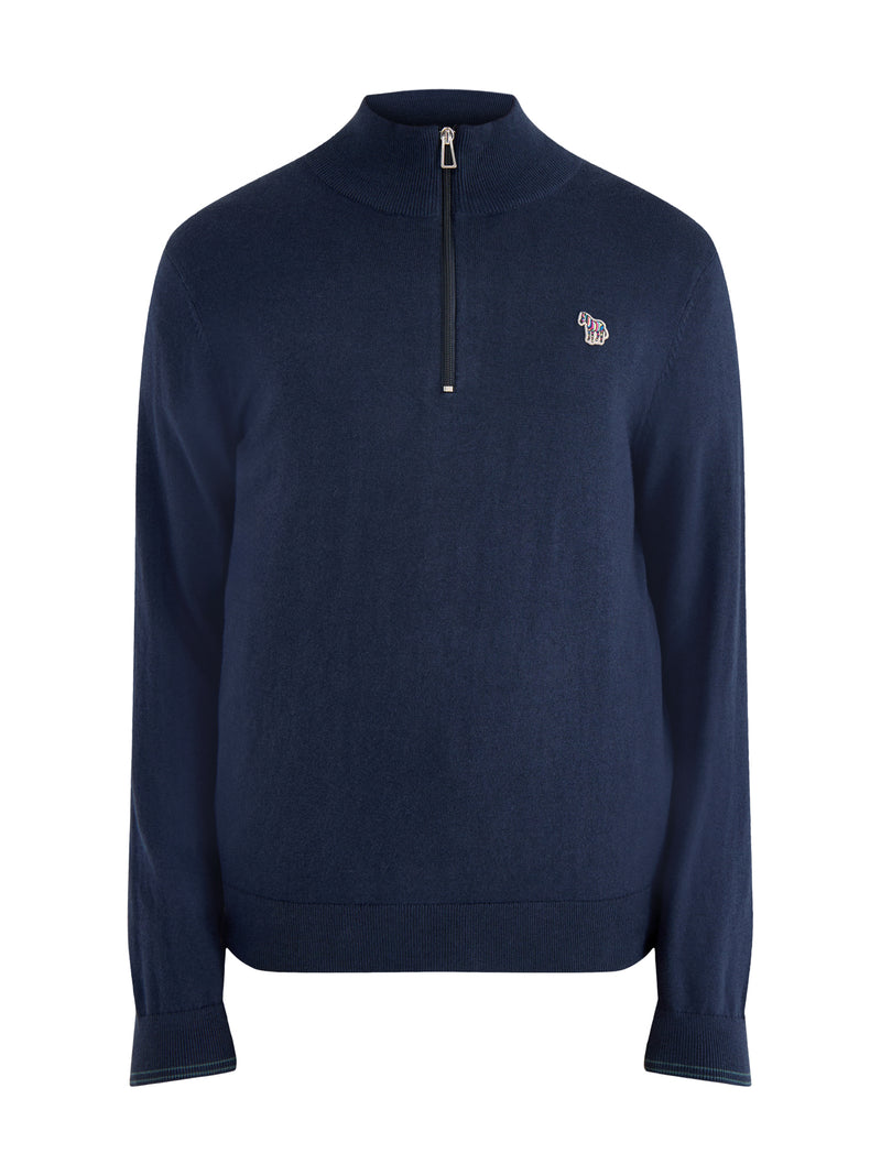 The Zip Neck Zebra Knit by PS Paul Smith is spun from soft, breathable cotton with a ribbed collar and quarter-zip fastening. Finished with the signature multicolour Zebra motif at the chest, it balances everyday ease with refined craftsmanship.