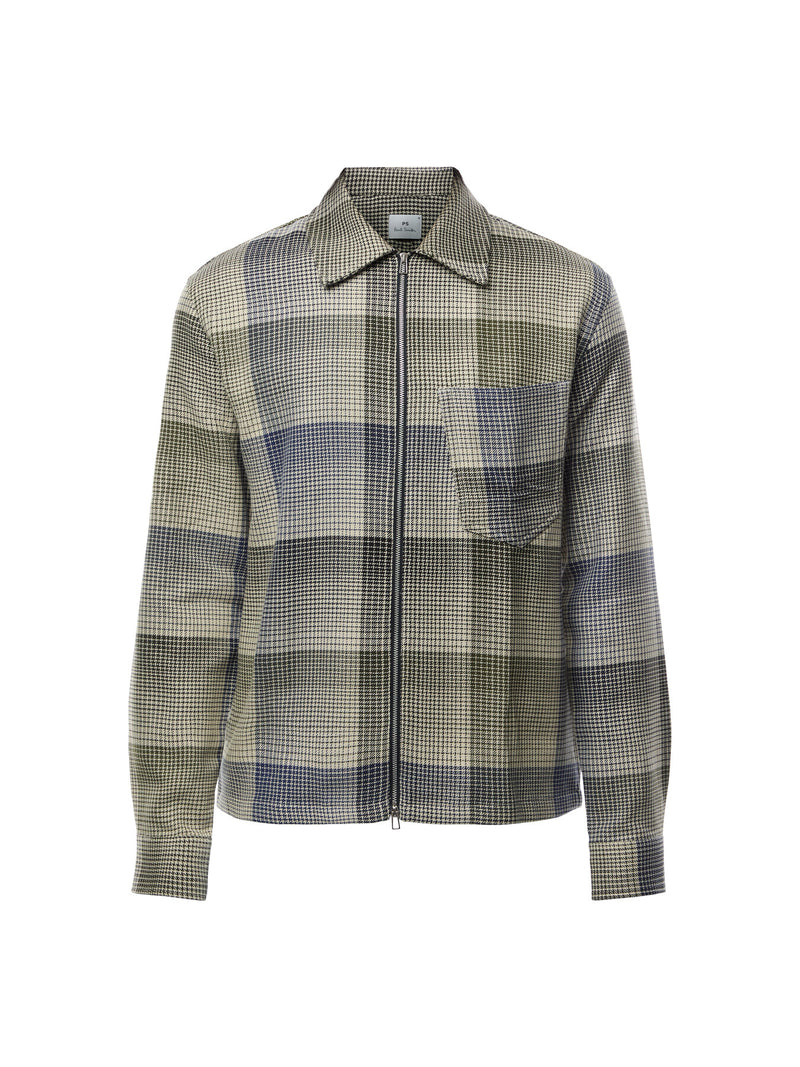 Double Face Check Cotton Zip Overshirt