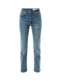 The Wren. The perfect hybrid of skinny and straight, with a high-rise fit that cuts for a full length. Crafted from our Flexi denim that smooths, sculpts, and stretches for ultimate comfort and style wherever life takes you. In Mack, a light indigo wash with a clean, finished hem.