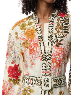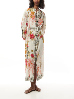 Step into elegance with the Brenna dress, featuring a vibrant floral pattern on a rich, dark base, this long-sleeved dress in a midi length is perfect for a range of occasions—from daytime events to evening gatherings. The dress is adorned with vibrant blooms and botanical accents, while the belted waist adds definition for a flattering silhouette.