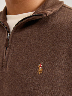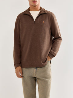 1/4 Zip Ribbed Cotton Sweatshirt Brown