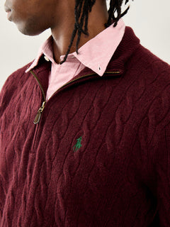The Cable-Knit Half-Zip Jumper Burgundy reimagines a classic silhouette in a rich seasonal tone. Made from a soft wool-cashmere blend, it offers natural warmth and breathability. The signature cable texture and embroidered Pony complete this Polo Ralph Lauren men’s jumper - a timeless piece of luxury knitwear.