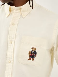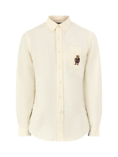 The Oxford Shirt Cream is a cornerstone of men’s designer shirting. Woven from pure cotton for softness and durability, it captures Polo Ralph Lauren’s collegiate aesthetic with a button-down collar and embroidered Pony. A versatile men’s shirt designed for work, weekend, and everything in between.