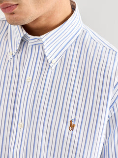 Custom Fit Multi Stripe Oxford Dress Shirt Blue