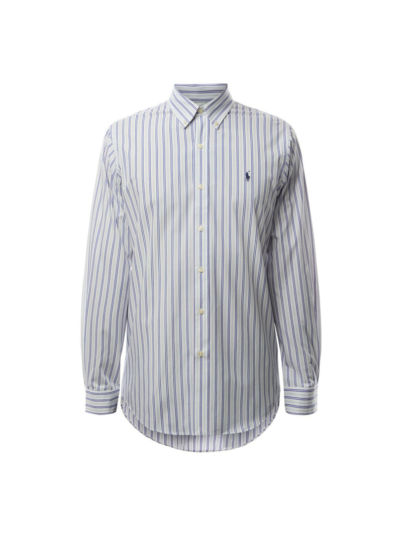 Upgrade your wardrobe with our Custom Fit Poplin Stretch Stripe Shirt. Designed with a trim silhouette, it offers a flattering fit that falls between our Classic and Slim Fit styles. The tailored waist adds a touch of sophistication. Elevate your style while staying comfortable with its stretchy fabric.