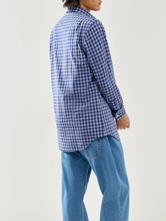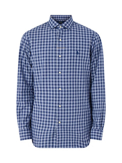 Custom Fit Stretch Poplin Check Shirt Navy Multi