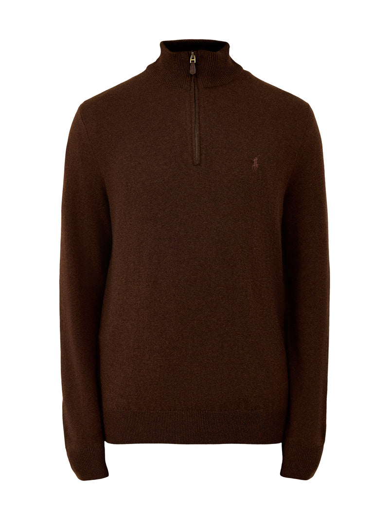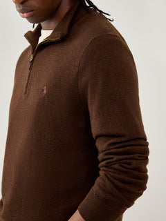 Half-Zip Merino Wool Jumper Cacao Brown