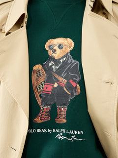 The Holiday Bear Sweatshirt Green is a playful icon from Polo Ralph Lauren’s men’s collection. Crafted from soft cotton jersey, it showcases the brand’s signature bear motif dressed in festive attire. A collectible piece that blends heritage charm with modern casualwear.