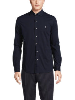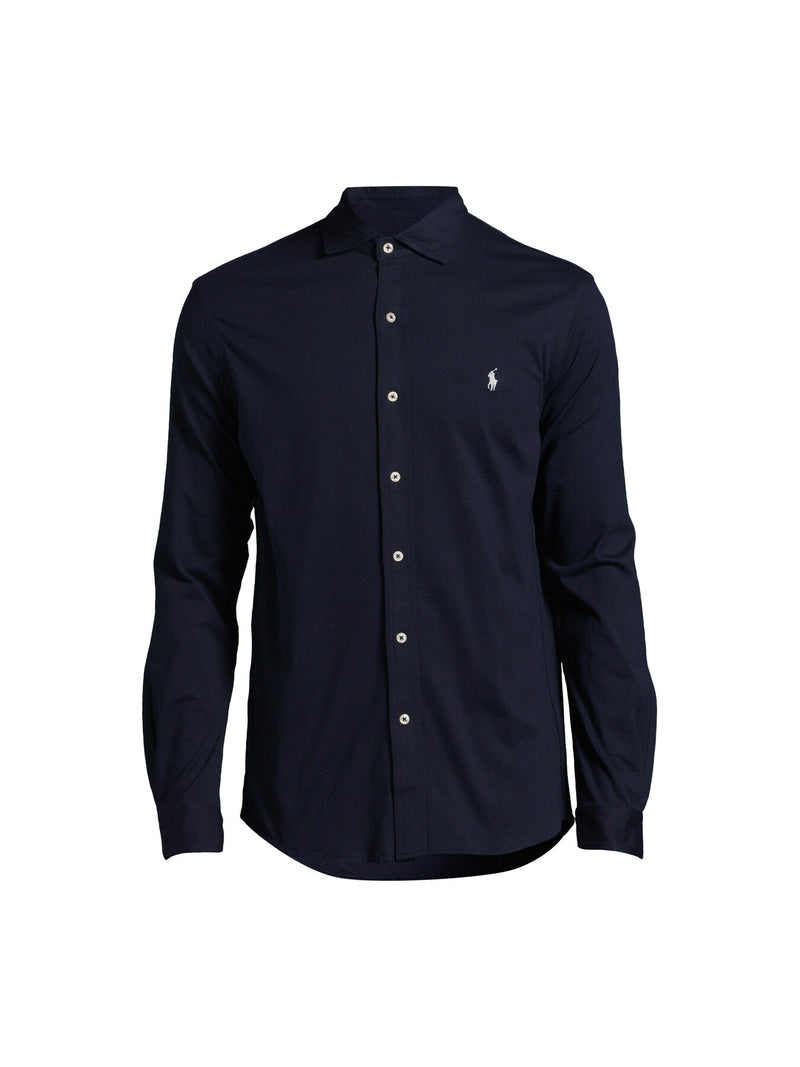 This piece combines the polished look of our signature spread-collar shirt with soft cotton jersey. Ralph Lauren partners with Better Cotton to improve cotton farming globally. Better Cotton trains farmers to use water efficiently, care for the health of the soil and natural habitats, reduce use of the most harmful chemicals, and implement the principles of decent work.