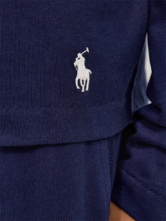 This long sleeve hooded pyjama top is perfect for a cozy night's sleep. With a soft cotton fabric, it features a drawstring for an adjustable fit. The embroidered logo at the side adds a touch of style. Stay comfortable and modern all night in this hoodie.