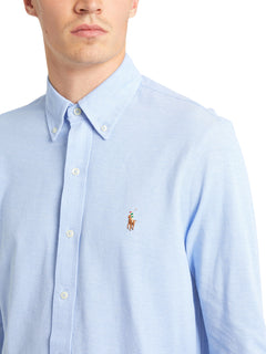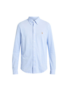 This Geometric Oxford Mesh Long Sleeve Shirt features a buttoned collar and button closure for a timeless look. Made of breathable cotton, it also includes an embroidered logo on the chest for added style.