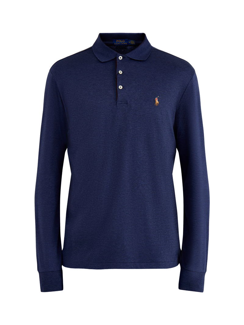 Pima Cotton Long Sleeves Polo Top Blue