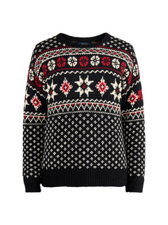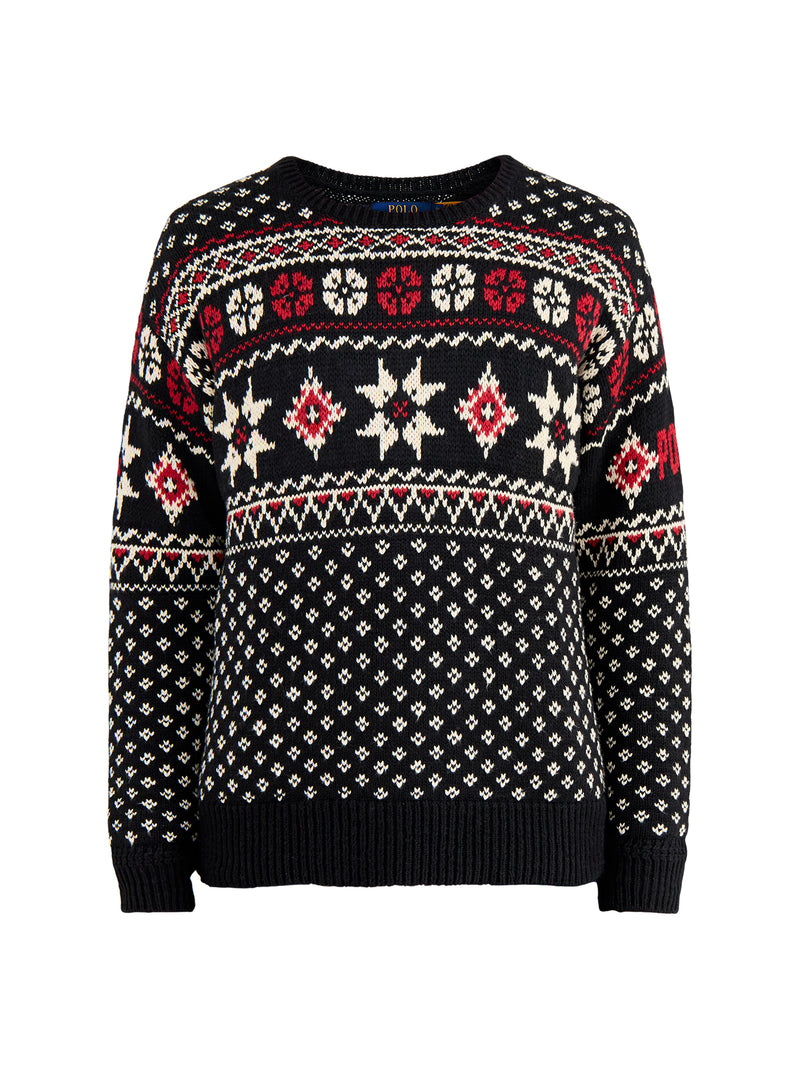 The Snowflake Wool Jumper by Ralph Lauren is crafted from soft wool with an intarsia snowflake motif. Each stitch reflects precision craftsmanship, creating a piece that balances texture and tradition.
