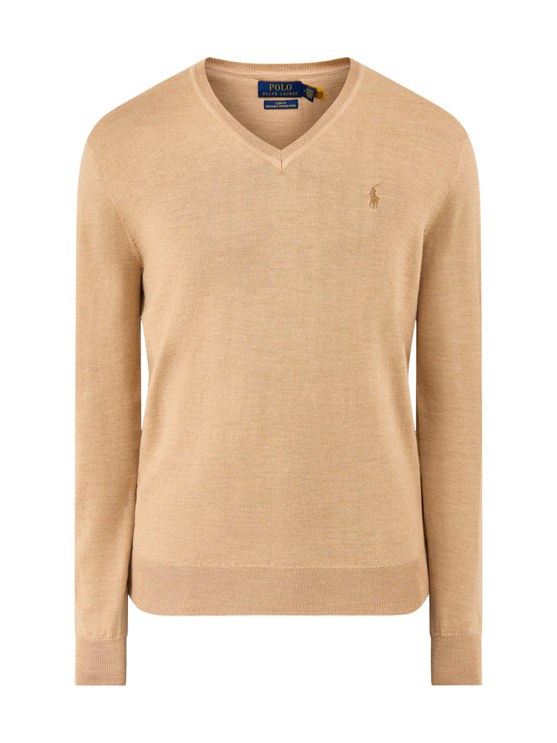 Merino Wool V-Neck Jumper Camel