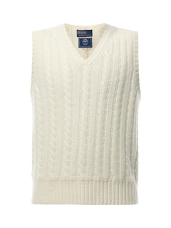 Stay warm and stylish with our Wimbledon Cable Knit Vest. Made of high-quality materials, this vest features intricately woven cable patterns for a classic, sophisticated look. Perfect for layering or wearing alone, it's a versatile piece for any wardrobe.