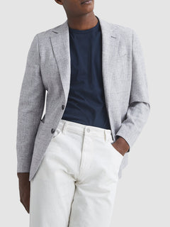 Add the Lindhurst blazer in grey to your tailored collection for a smart piece which endures through the seasons. It's engineered from a wool blend into a single-breasted silhouette, with a two-button closure. This style features dual patch pockets and a jetted pocket to the chest. Finished in a heritage check, it is best styled as part of a formal ensemble. Wear over a shirt with tailored trousers and monk shoes for an elevated edit. Notch la