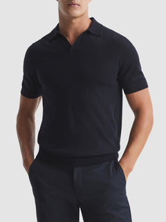 The navy Duchie short-sleeve polo shirt is spun from 100% merino wool for a luxuriously soft finish and it’s fitted with an open collar neckline. 100% Merino wool Open collar Short sleeves