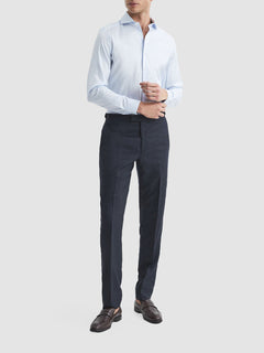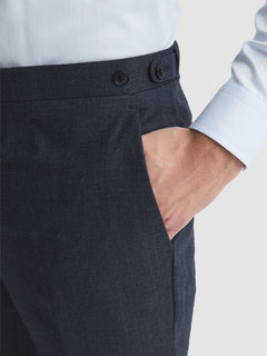 The navy Dunn trousers blend formality with a contemporary edge. They're cut from a textured fabrication into a slim fit silhouette. Style with crisp shirting and the matching blazer for a sartorial look. Textured fabrication Zip fly and hook closure Side slip pocketsSide adjusters Jetted pockets to reverseSlim fit