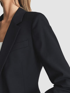 Upgrade your workwear options with the Haisley blazer, blended with premium wool yarns for a soft and comfortable wear. It's engineered with notch lapels and a single-breasted silhouette. Layer over a white blouse and pair with the coordinating trousers for a monochrome edit. Notch lapelsLightly padded shouldersSingle-breasted design Single button closureFlap pocketsJetted pocket to chestButtoned cuffsSingle vent to reverseLined