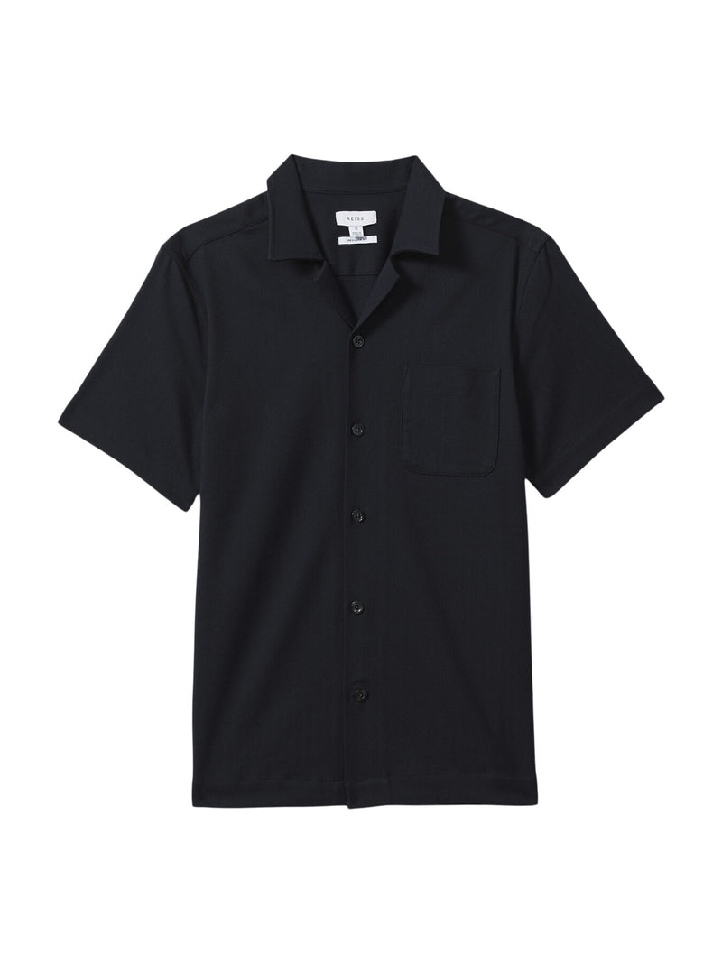 Made from a smooth, stretch-enhanced fabric, the Nitus shirt is woven into a subtle herringbone design and it’s made more formal with a Cuban collar.Cuban collar Herringbone design Button-front closure