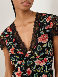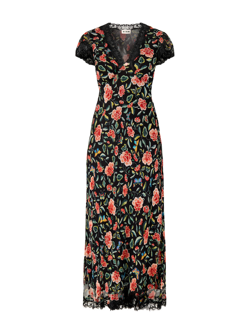 The Clarice Midi Dress by Rixo is crafted in silk blend fabric with a vintage-inspired butterfly floral print. With puff sleeves and a flowing skirt, it captures timeless femininity with a modern twist.