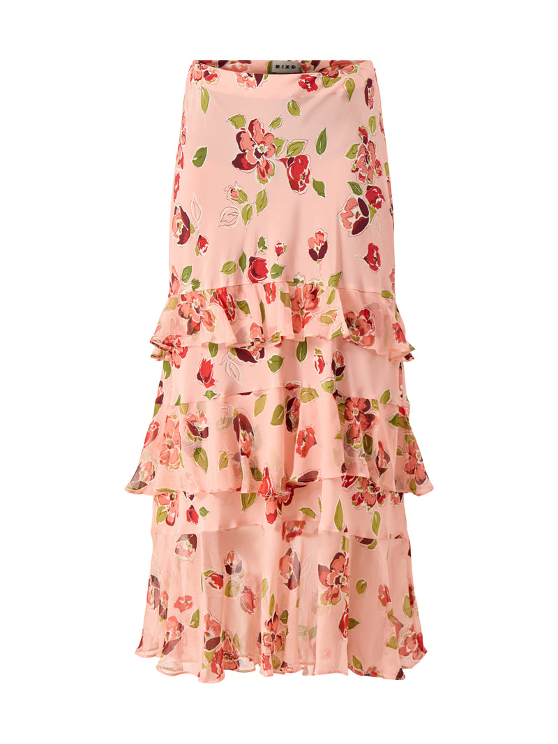 The Preslee Skirt by Rixo features a fluid silhouette finished with a delicate floral print. Designed to move effortlessly, it pairs easily with simple tops. A feminine addition to contemporary wardrobes.