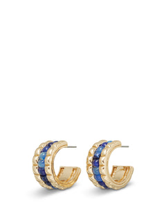 Puffy Stud Hoop Earrings Lapis Gold