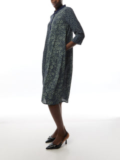 Elevate your everyday wardrobe with the Stitch Print Shirt Dress, crafted from a luxurious viscose twill that blends fluid drape with a soft, warm handle. The striking stitch print is artfully contrasted on the yoke and blouson sleeves, bringing depth and modern flair to this versatile piece.