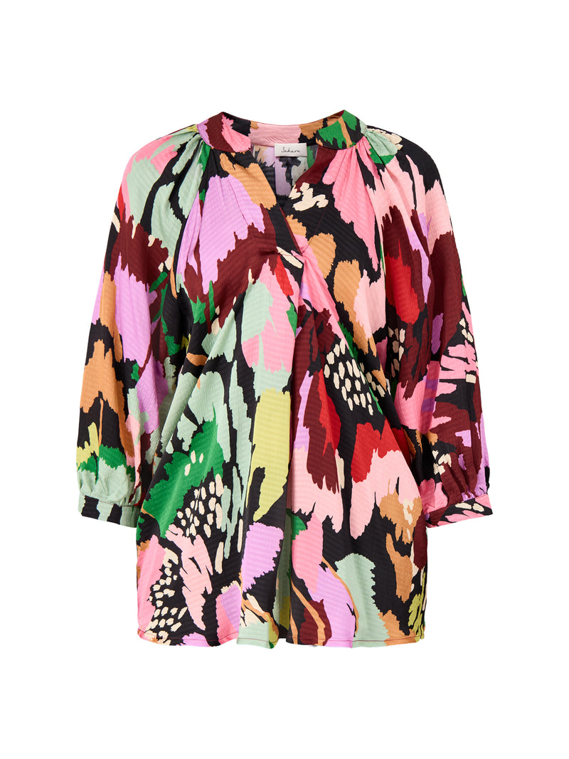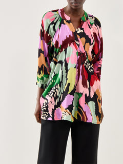 The Large Floral Collage Top in Multi features a vibrant mix of floral patterns, perfect for adding a cheerful touch to your wardrobe. Its lightweight fabric ensures comfort throughout the day, while the relaxed fit allows for easy movement. This versatile top pairs well with jeans or skirts, making it a great choice for casual outings or garden gatherings.