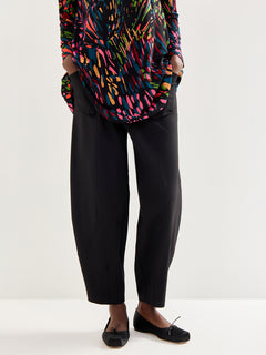 These Ponte Bubble Trousers combine comfort and style with their soft, structured fabric and unique bubble silhouette. Designed to offer a relaxed yet polished look, they provide ease of movement while maintaining a flattering shape. Perfect for both casual and smart-casual occasions, these trousers add a contemporary edge to wardrobe.