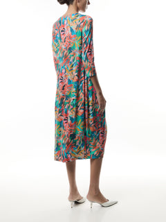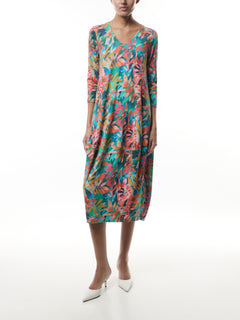 Introduce a dash of colourful florals with our Blue Bouquet Jersey dress. A botanical print of turquoise and lemon lift this viscose jersey bubble dress, taking echoes of the Summer into the Autumn months.Crafted from a soft stretch jersey, this versatile dress features 3/4 sleeves, a V-neck and a generously cut bubble skirt.