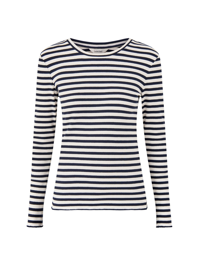 The Anna crew neck tee by Selected Femme is cut from soft cotton jersey with a striped design. Lightweight and comfortable, it reflects clean everyday styling. A T-shirt crafted with simplicity and timeless appeal.