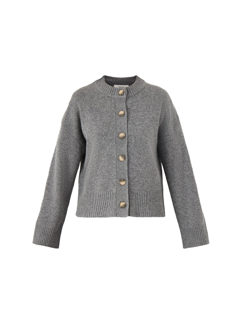 Cille Ls Knit O-Neck Cardigan Medium Grey Melange