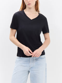 The Myessential Short Sleeves V-neck Tee offers a classic fit with a flattering V-neckline and comfortable short sleeves. Made from soft, breathable fabric, it’s perfect for everyday wear, providing both style and ease throughout your day. Ideal for layering or wearing on its own, this versatile tee is a wardrobe essential.