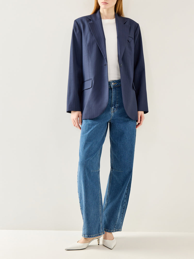 Sanne Oversized Pinstripe Blazer Navy Stripe