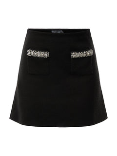 With a flattering high-waist, flared hem and diamanté trims, this is far from your usual black mini. Pair with the matching knit for date night or style with a t-shirt for karaoke with the girls.
