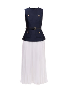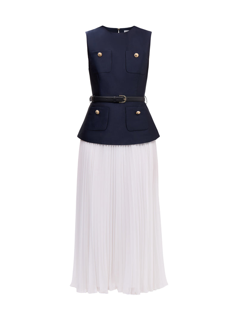 Navy Taffeta Midi Dress