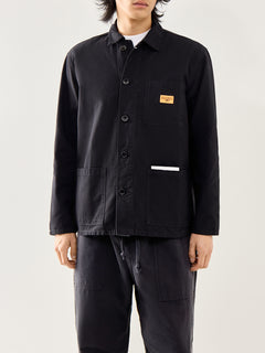 The Canvas Chore Shirt by Service Works is built in durable cotton canvas with a structured silhouette. A practical staple suited to layered modern dressing.