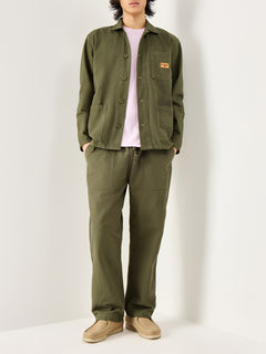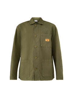 The Canvas Chore Shirt by Service Works is built in durable cotton canvas with a structured silhouette. A practical staple suited to layered modern dressing.