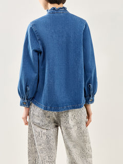 The Pablo Jacket by seventy + mochi is cut in recycled denim with signature stitching. A vintage-washed layer grounded in the brand’s conscious craft approach.