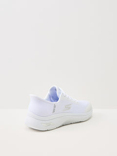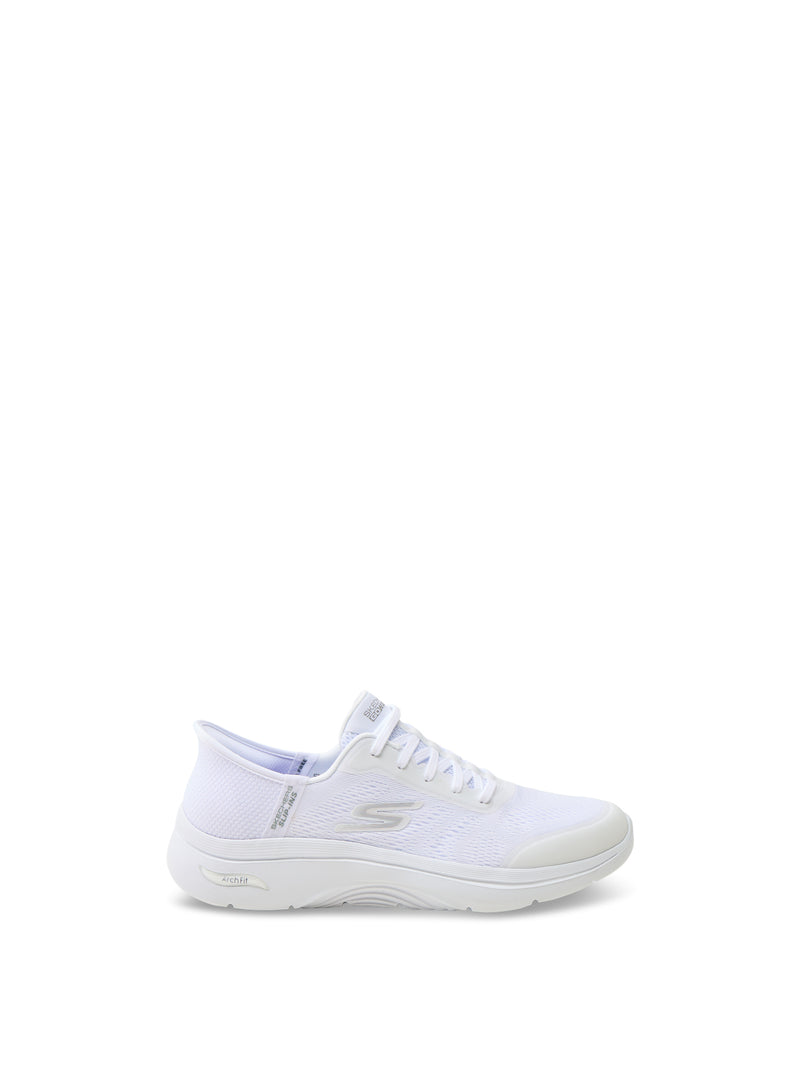 The Go Walk Arch Valencia Trainers in White combine comfort and style, featuring a supportive arch design for enhanced foot stability. Crafted with lightweight materials, these trainers provide breathable wear ideal for everyday walking. Their sleek white finish offers a versatile look that pairs well with casual outfits, making them perfect for those seeking both function and fashion in their footwear.